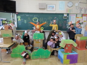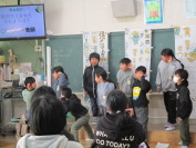 3月12日(木)の1時間目に、3年生が1年生に英語劇を発表しました。子どもたちは十二支の動物になりきり、英語を使ってかくれんぼをする楽しい劇を披露しました。3年生は、この一年間、外国語活動の時間に練習してきた英語を使い、元気いっぱいに、そして楽しみながら発表することができました。動物になりきって演じる姿からは、自信と成長が感じられました。