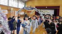 10月7日(火)、1・2・3年生がバルーンアートの体験をしました。稲沢Funsの方々から、花と剣の作り方を教えていただきました。風船が割れてしまわないかドキドキしながらも、楽しんで作品を完成させることができました。最後には作品を手にしながら、友だちと一緒に楽しく遊び、体育館が笑顔で溢れました。