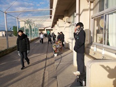 すっかり寒くなりました。生活委員は寒い中でも元気よくあいさつ運動をしています!