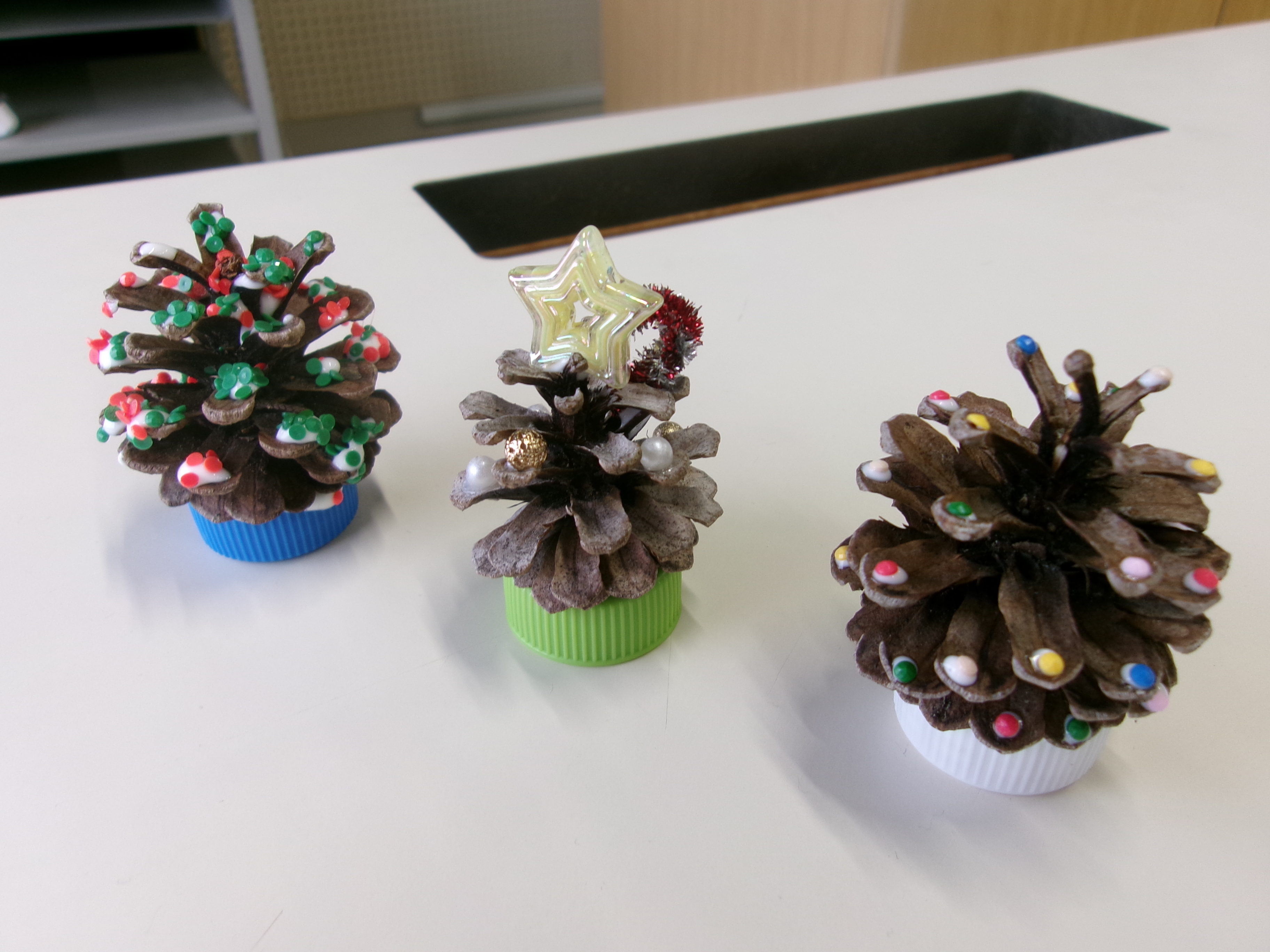 タブレット・クラフト部の部活動では松ぼっくりを使ったクリスマスツリー制作を行いました。ビーズなどをデコレーションしてそれぞれが工夫したツリーへと完成させました。メリークリスマス!