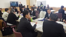 1月28日(水)に、「平和町のこれからを語る会」がありました。19名の代表生徒と11名の地域の方々が、よりよい平和町にするためにできることについて話し合いをしました。「ゴミを減らし、きれいな町にしたい」「地域の人と一緒にボランティア活動をする」「安心・安全な平和町にしたい」など、一人一人がしっかりと意見を伝えることができました。そして、地域の方々からも、さまざまなアドバイスをいだだくことができ、とても活発な話し合いとなりました。堂々と「夢や希望を語る」生徒の姿は、とても立派でした。実現に向けてのこれからが楽しみです。 |