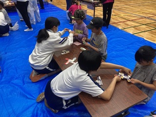 8日(日)に「こどもフェスティバル」が稲沢勤労福祉会館で行われました。そして、25名の生徒がボランティアとして参加しました。さまざまなゲームの受付や呼び込みをしたり、折り紙でコマや手裏剣の作り方を丁寧に教えたりと、参加した子どもたちが楽しむことができるように、一生懸命に活動する姿がありました。さまざまな人との交流や出会いを通して、生徒たちも成長しています。 |