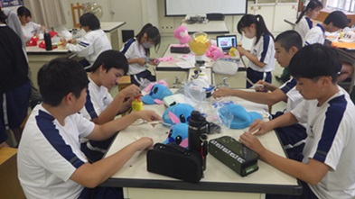 クリエイティブクラブでは、学校祭に向けて作品づくりをしています。何を作ろうか考えながら、イラストを描いたり、工作をしたりしています。友達と楽しく取り組んでいる生徒や一人でコツコツ仕上げていく生徒など、集中するまなざしは真剣そのものです。学校祭当日は、1階ホールに作品が展示されます。どんな作品ができあがるか、楽しみですね。 |
