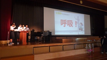 学校祭に本番に向けて、着々と準備や練習が行われています。校内では、子どもたちの歌声が響き渡り、運動場では、元気なかけ声を出して大縄を練習する姿があります。体育館では、環境委員会と保健委員会が発表に向けてのリハーサルを行っていました。限られた時間の中で、子どもたちを中心に、先生方が縁の下の力持ちとなって、思い出に残る学校祭を創り上げています。 |