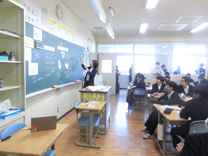 本日で、2名の実習生による3週間の教育実習が終わりました。「分かる・楽しい」授業ができるように、授業計画を立てたり、教材を作ったりと日々、研鑽する姿がありました。また、休み時間には積極的に生徒と関わり、良好な関係づくりに努める姿がありました。まじめにひたむきに実習を行うことができました。「先生の醍醐味」を味わうことができた3週間でした。先生となって再び会えることを楽しみにしています。 |