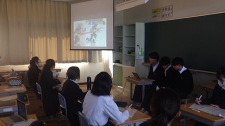 3時間目にKDDI主催のスマホ・ケータイ安全教室オンライン講座を行いました。「SNSへの投稿をきっかけとしたトラブル」や「課金(投げ銭)トラブル」、「SNSによる出会い系トラブル」の3つのテーマについての映像を視聴しました。その後の生徒たちの感想には、「情報を冷静に判断したい」「困ったら大人に相談することが大切だ」「個人情報は大切に扱いたい」などと書かれていました。今回の学習を通して、生徒たちが自らの判断で、リスクを回避する能力を身に付けてほしいと思います。 |