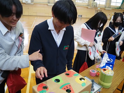 8日(日)に「こどもフェスティバル」が稲沢勤労福祉会館で行われました。そして、25名の生徒がボランティアとして参加しました。さまざまなゲームの受付や呼び込みをしたり、折り紙でコマや手裏剣の作り方を丁寧に教えたりと、参加した子どもたちが楽しむことができるように、一生懸命に活動する姿がありました。さまざまな人との交流や出会いを通して、生徒たちも成長しています。 |