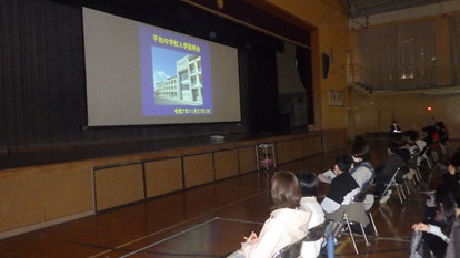 「ようこそ、平和中学校へ!」という気持ちを込めて、入学説明会を行いました。平和中学校の行事や学習、生活、部活動などについての説明をしました。 落ち着いた様子と真剣な眼差しで話を聞く姿から、中学生になるという期待と不安、そして「頑張るぞ!」という気持ちが伝わってきました。4月の入学式で、元気な新1年生に会えることを心から楽しみにしています。 |