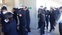 26日(木)3時間目に、不審者対応の避難訓練を行いました。不審者が侵入してきたときの職員の対応や生徒たちへの避難指示、そして、生徒たちの安全な避難行動の仕方などを訓練をしました。避難完了後には、安全指導担当の先生から、今回の訓練を通して、自分や仲間の命を守るための行動や登下校中に不審者に出会った場合の対応について、具体的に分かりやすくお話をしていただきました。 |