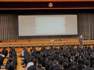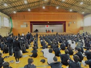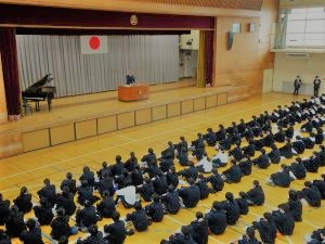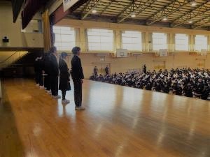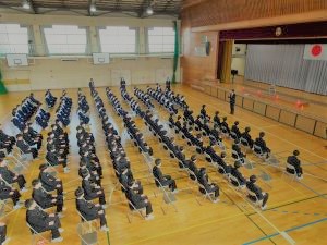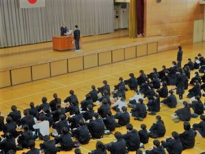 生徒指導の先生からは、小さな努力の積み重ねを実行していくことで自分を強くしていくよう励ましのお話がありました。安全担当の先生からは、地域でのルールやマナーや交通安全を守り安心安全に過ごすようお話がありました。