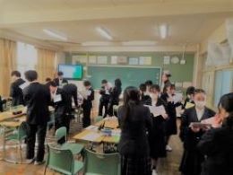 12月23日(火)は2学期の終業式でした。校長先生から「自分のつくった道を振り返る大切さ」についてお話がありました。ある野球選手が、けがからのリハビリのために走った場所が芝生のグラウンドの中で道のようになったことや、走りながらそれまでのプレーを振り返り、その先のプレーについて考えたことが、復帰後の活躍に繋がったことが紹介されました。式後には、作文やサッカー大会で活躍した生徒の表彰がありました。この2学期に振り返りながら歩んでつくった道が次の自分の成長に繋がることを実感する冬休みとなりそうです。