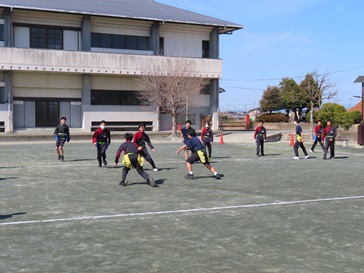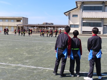 2年体育「鬼ごっこ?」 2年生の体育では「鬼ごっこ」の学習が進んでいます。「相手を全員捕まえるまでの秒数」「ラインを突破できた人数」「事前に決めておいた王様が突破できるかどうか」など、少しずつルールを変えて行っています。3年生で実施する予定の「フラッグフットボール」につながる動きを身に付けます。