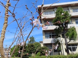 2月、創立記念事業サポート会に寄贈・植樹していただいた桜(ソメイヨシノ)が開花しました。これから長きにわたって、治中生とともに、大きく元気よく成長していくことを願っています。