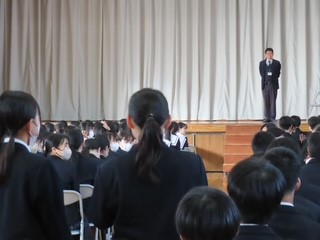 稲沢警察の担当者の方から、「薬物乱用防止」についてお話を聞きました。中間テストが終わってホッとしたところでしたが、みんな真剣に耳を傾けていました。