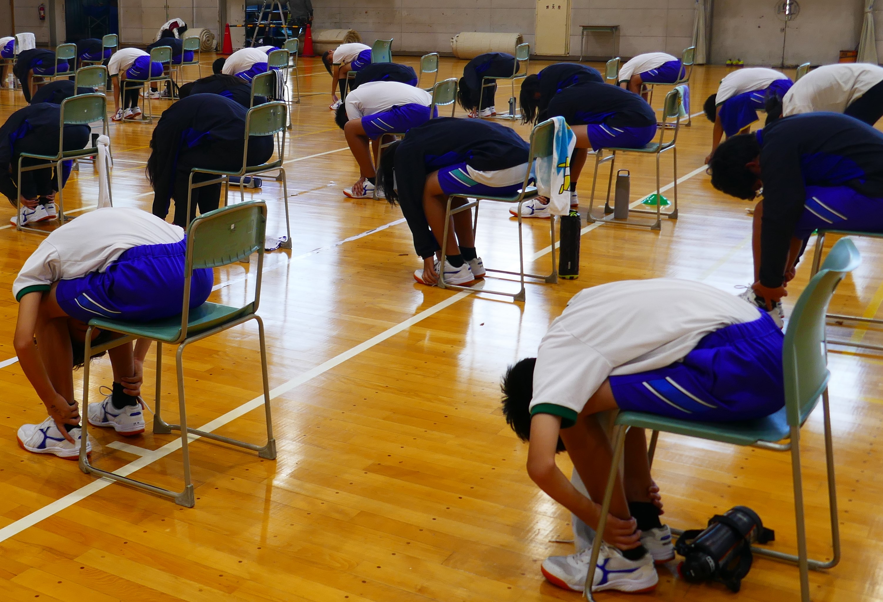 10月27日、けが予防の大切さとけがをしない体づくりを学ぶため、外部講師をお招きして、1年生を対象に「健康教室」を開催しました。 講話では、けがや痛みを予防するために、日頃から正しい姿勢で過ごしたり、ストレッチで体の筋肉をほぐしたりすることが大切であることを学びました。また、けが予防で大切なストレッチを教えていただき、体がほぐれることを実感することができました。