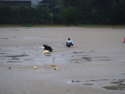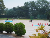 | 10月14日(火)の夜から降り続いた雨のため、本日10月15日(水)の里中祭(体育祭)開催が心配されましたが、思いの外グラウンドコンディションも悪くないということで、先生方が“我夢謝楽”になって、グラウンドの水を抜いています。里中生の輝く笑顔が見られる素敵な里中祭となることを願って....。 |  |  |