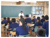 | 6月10日(火)、アメリカからShumさんファミリーをお迎えしました。以前大里中学校でALT(当時はAET)をしていたLeilaさんが、自分の職場をご家族に紹介したいということで訪問されました。当日は1年生、2年生の英語の授業に参加し、Shumさんファミリーの自己紹介や質問コーナーなど、英語でやりとりを行いました。英語での質問に緊張した様子の生徒もいましたが、「自分の英語が通じた!」「ネイティブの英語がわかった!」と喜ぶ生徒もいて、生徒達にとって大変貴重な経験となりました! |  |  |